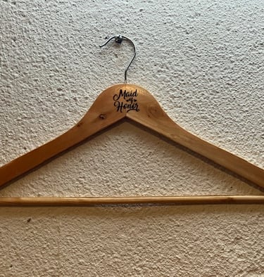 Custom wooden hangers, ideal for your wedding day. $5 each